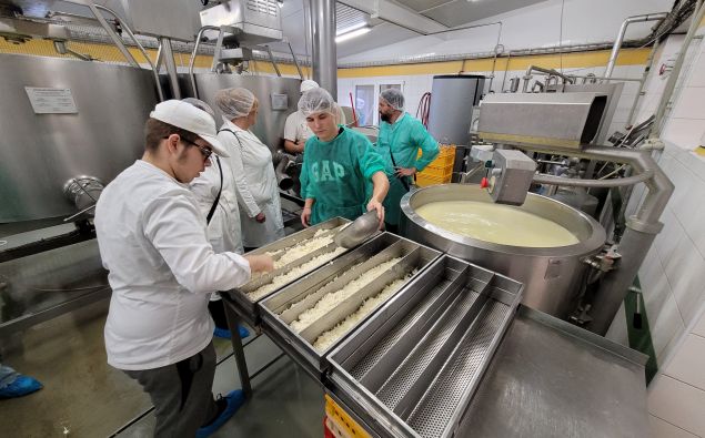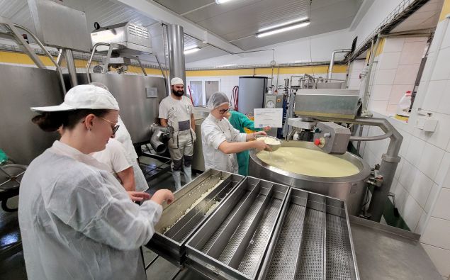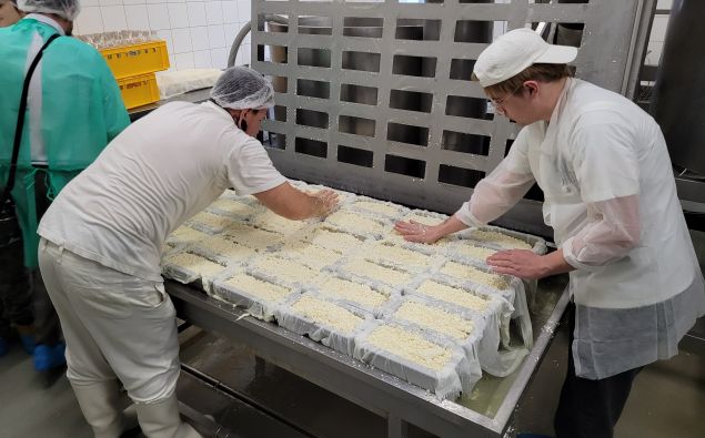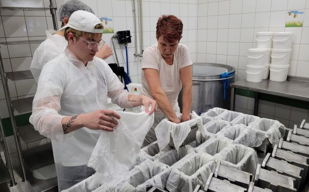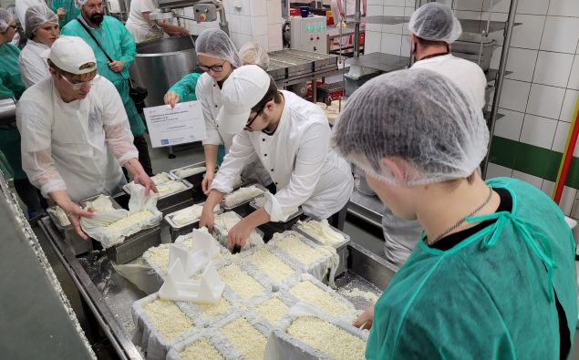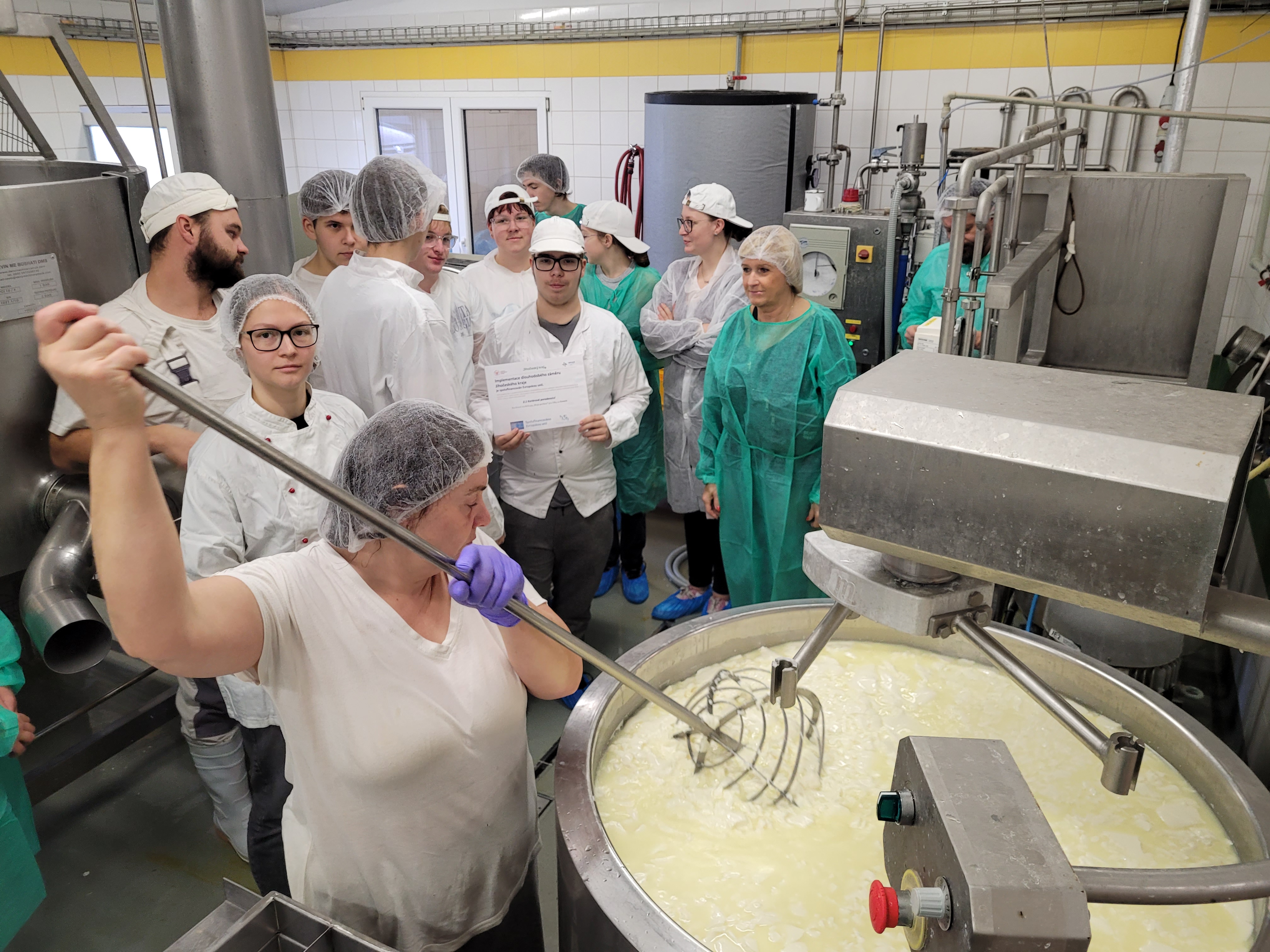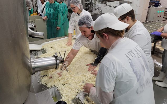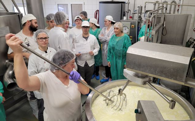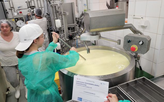 - Praktická část - práce se sýrovým zrnem, vypouštění tvarohové sýřeniny, balení - za účasti odpovědných pracovníků