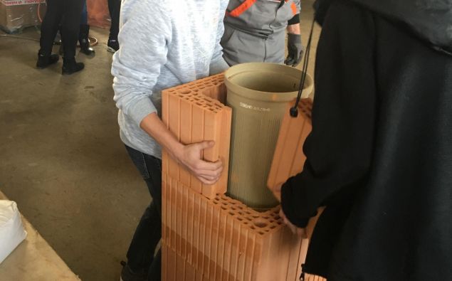 - Interaktivní činnost ve formě vlastnoručního stavění komínu. Každý žák má možnost vyzkoušet si na vlastní kůži postavit komín z pravých cihel pod vedením odborného pracovníka firmy.