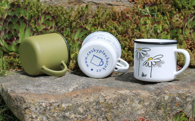 - Vlastnoručně dekorovaný smaltovaný plecháček.