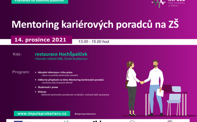 Srdečně Vás zveme na 2. platformu kariérového poradenství na téma: Mentoring kariérových poradců na ZŠ. Potkáme se v krásných prostorách restaurace Hoch, Špalíček v Českých Budějovicích a budeme diskutovat na témata: proč je potřeba podpořit kariérové poradce na ZŠ, jaká je úroveň kariérového poradenství na školách v Jihočeském kraji, co můžeme udělat proto, aby si naši žáci vybrali již od začátku to správné povolání a další.Těšit se můžete na: