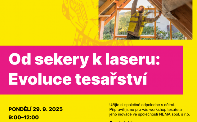 V rámci projektu JOBITY – Future Jobs in Innovation & Technology financovaného z programu Interreg AT-CZ 2021-2027 Vás srdečně zveme na zážitkový den ve firmě Nema, spol. s r.o. Přijďte na dopoledne plné interaktivního tvoření pod vedením odborníků z praxe a vyzkoušejte si zábavnou formou profesi tesaře.NA CO SE MŮŽETE TĚŠIT?